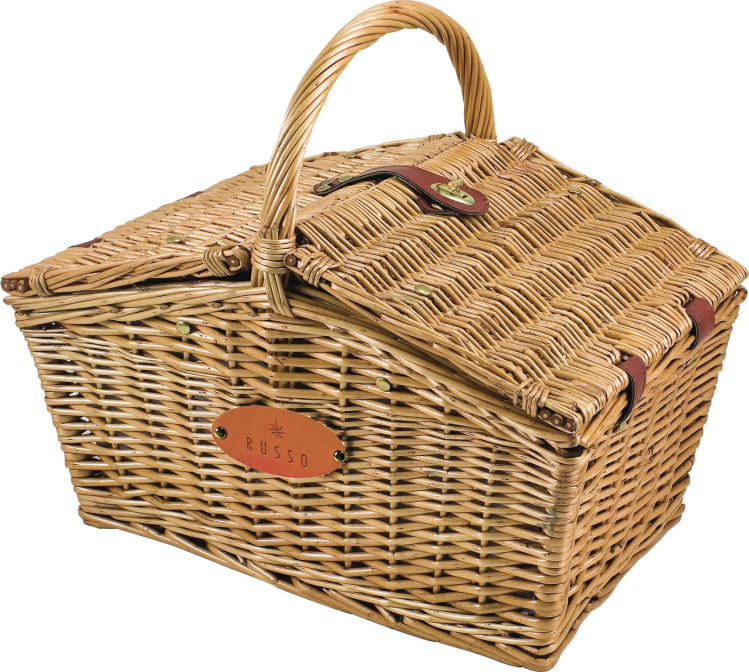 The natural Picnic Time Piccadilly picnic basket measures 16" in length and has an easy access double lid, traditional design. It provides service for two so that it includes two PS 8" solid white plates, two PS 8 oz wine glasses, two 18/0 stainless steel forks, knives, and spoons, all with a plastic, wood grain design handle. The kit also includes one stainless steel waiter style corkscrew. The basket comes with a matching roll up flatware pouch and premium leatherette accents, which can be printed with your store's name and logo, making it a fantastic promotional item. Every time people go on a picnic to enjoy the finer moments of life, they will bring your brand with them, in other words. The basket measures 17.5" in height by 12.5" in width and 14.75" in length. It truly is a full picnic set, and anyone who owns it will be ready for an unplanned romantic picnic. The traditional design of the set gives it a nostalgic charm. The glasses and plates are made of polystyrene that is fully compliant with relevant legislation. Each piece that is included in the picnic set has its own designated spot, found on the lid's underside. The basket itself is made from a natural willow with brown leatherette accents, a double entry lid, gold metal hardware, and a traditional red and white plaid liner. This custom kit really is the perfect accessory to take on a romantic date, whereby two people can bond while enjoying some small talk.